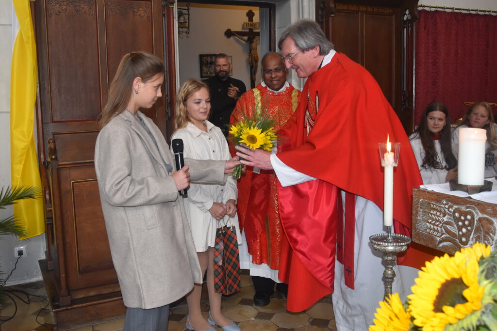 Firmlinge bedanken sich bei Domkapitular Msgr. Walter Schmiedel für die Firmspendung