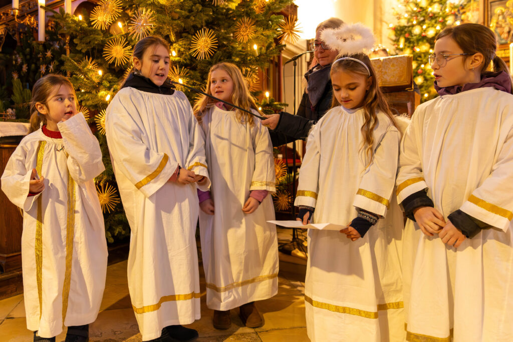 Umrahmt wurde das Krippenspiel vom Aindlinger Kinderchor, der zwei weihnachtliche Lieder sang. Auf der Gitarre wurden sie dabei von Elisabeth Friedel begleitet und angeleitet. Nach dem Kindersegen bedankte sich Pfarrer Babu bei allen Besuchern und wünschte jedem ein frohes Fest. Das gemeinsam gesungene „Stille Nacht, heilige Nacht“ beendete die Kindermette.