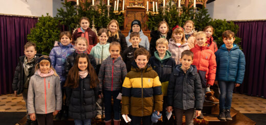 Im Bild hinten von links: Mesner Erwin Friedel, Sabine Stransky, Elias Friedel, Hanna Drotleff, Dominik Friedel, Lisa Stampfli, Johanna Stransky (vorne von links) Johannes Münch, Kaplan Jiby und Joan Schmidt