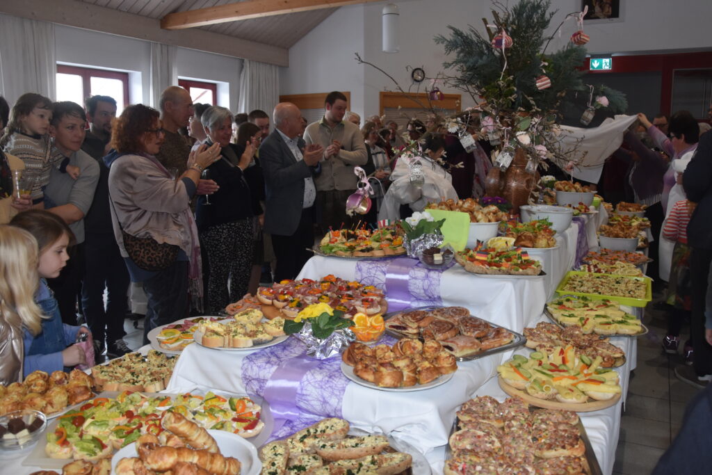 Bürgermeistern Getrud Hitzler mag zwar nicht weniger optimistisch sein, für sie ist der Blick nach vorne aber derzeit kein einfacher: „Unsere kommunalen Kassen werden spürbar knapper und gleichzeitig steigen die Aufgaben, die an uns herangetragen werden.“ Projekte die in den kommenden Jahren anstehen sind die Erweiterung der Grundschule sowie die Sanierung der Sportstätten an der Mittelschule. „Kinder verbringen mittlerweile mehr Zeit in der Schule. Da ist es mit der Errichtung eines Gebäudes nicht getan. Hier braucht es auch Raum für die persönliche Entwicklung unserer Kinder“, so die Bürgermeisterin weiter und mit Blick auf die Mittagsbetreuung: „Für die Eltern ist es wichtig, dass sie eine verlässliche, gute und auch für sie finanzierbare Betreuung ihrer Kinder erwarten dürfen.“ Umso wichtiger ist der Bürgermeisterin, dass man vor Ort das stärke, was man beeinflussen könne: „Den Zusammenhalt in unserer Gemeinde, das Engagement in Vereinen, das Ehrenamt, die Nachbarschaftshilfe und das gegenseitige Vertrauen.“ Die Marktgemeinde sei stark, weil sich viele Menschen einbringen, ist sich Hitzler sicher. „Und alles, was wir nicht gestalten können, das wollen wir vertrauensvoll in Gottes Hände legen. Danke, dass ihr für die Gemeinde da seid“, schloss die Bürgermeisterin ihre Rede ab und versprach den Gästen zuerst einen Augen- und dann einen Gaumenschmaus für das nun eröffnete Buffet. Der Aindlinger Pfarrgemeinderat hatte wieder allerhand herzhafte und süße Häppchen vorbereitet, welche sich die Gäste bei musikalischer Umrahmung durch die Blaskapelle des Musikvereins Aindling schmecken ließen.