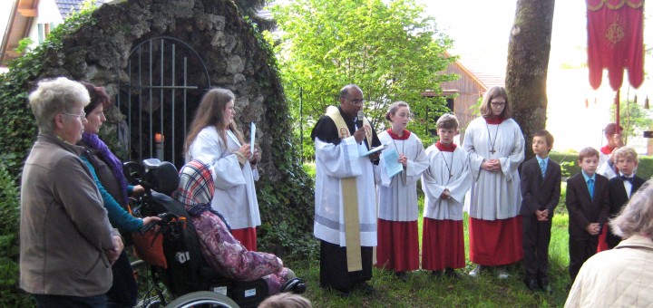 Zur Maiandacht unter freiem Himmel waren am Sonntag zahlreiche Gläubige in den Garten des AWO-Heimes in Aindling gekommen. An der Mariengrotte hielt Pater Babu die Andacht,...