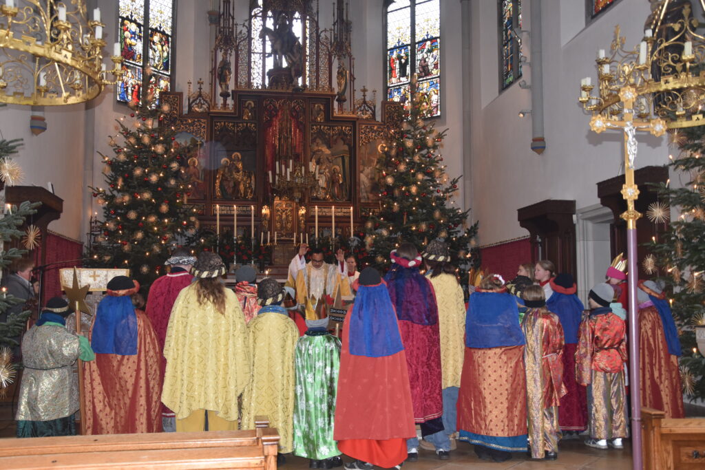Am Fest der Heiligen Familie sendete Pater Sunoj in der Pfarrei Aindling die Sternsinger aus. „Gott ist überall zuhause – nicht bei der perfekten Familie, sondern bei der liebenden Familie“, betonte der Geistliche in seiner Predigt mit Blick auf die Heilige Familie. Den Buben und Mädchen wünschte er gutes Gelingen bei ihrem Zug von Haus zu Haus und mit dem Spruch der Sternsinger fand der Gottesdienst seinen Abschluss.